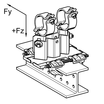 The tests for lifting forces - Fz were performed using a combination of a pipe shoe LC - HV an a guiding or fixed points sets. This results in the values for - Fz in the following combinations: