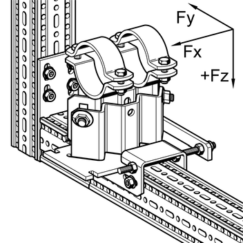 Axial fixed point forces Fx can only be attained by the professional use of anti-slip protections (e.g. cleats, stoppers). Those have to be planned during the design of the piping and are on the responsibilty of the piping manufacturer. To use our fixed point sets, fixed point angles and axial stops, it is necessary to dismantle the sliding plate, so a friction value of μ = 0.3 should be taken into account for the pipe static consideration.